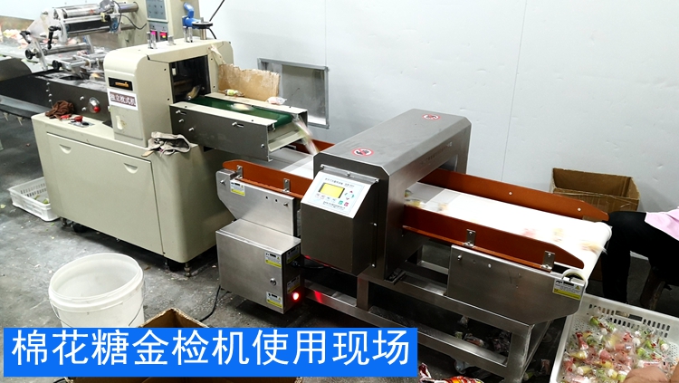 棉花糖金屬探測機使用現場,東莞某好食品是一家品牌棉花糖及雪糕杯食品生產企業,擁有自有品牌2個,使用連之新食品金屬檢測機金檢機五臺,以下為棉花糖和雪糕杯使用連之新金檢機的現場!