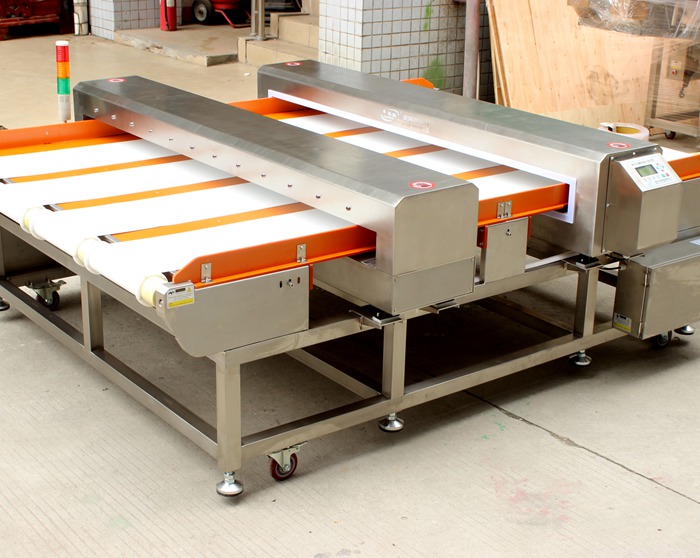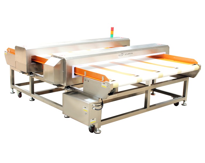 采用磁感和電平衡檢測雙系統探測型數字式金屬檢測機,整機采用304不銹鋼設計制作,并且前探頭采用傳統檢針機制作有位置指示燈功能,第二組探頭為全金屬檢測機系統,可檢測出細小的鐵、銅、鋁、不銹鋼等所有金屬異物。